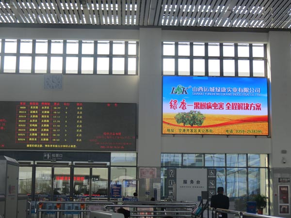 近幾年,隨著運(yùn)城市的快速發(fā)展,東部逐漸被開發(fā)利用,機(jī)場、高鐵站、客運(yùn)站也依次坐落于運(yùn)城東部,地理優(yōu)越,交通便利。2015年10月,綠康公司在運(yùn)城高鐵站投資的廣告牌投入使用,高鐵站人流量大,廣告牌處于入站口處,位置醒目。在進(jìn)一步加大公司知名度的同時(shí),也彰顯了綠康公司在山西省農(nóng)作物病蟲害防治方面的地位。