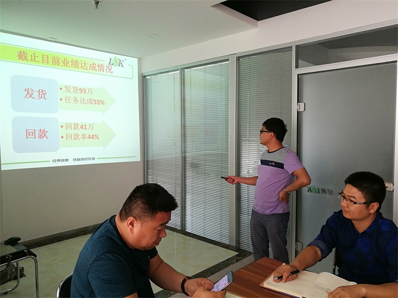 會(huì)議第二天,周總做2017年銷售工作總結(jié),首先對(duì)比了各個(gè)市場(chǎng)2016年與2017年同期發(fā)貨情況及公司大品的漲跌情況,其次總結(jié)了上半年銷售中存在的問題及需要改進(jìn)的具體方案。之后安排了下半年的發(fā)貨及回款任務(wù),*** 后總結(jié)了銷售隊(duì)伍中存在的問題及下一步改進(jìn)的辦法。并特別指出今年希望各位業(yè)務(wù)經(jīng)理按照公司要求的時(shí)間內(nèi)完成公司制定的任務(wù),以便公司全力以赴舉辦年底的植保會(huì)。